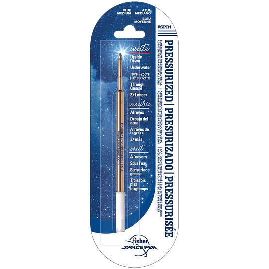 El cartucho de tinta presurizado sellado de Fisher Space Pen funciona a temperaturas de entre -34 °C y +121 °C, bajo el agua, en gravedad cero, en cualquier ángulo, ¡incluso boca abajo! ¡Lo último en confiabilidad!